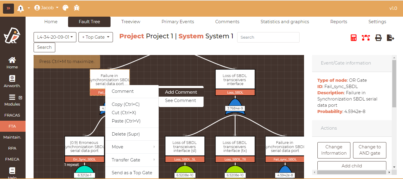 Enter in the desired FT. To make a comment in a node, selectanode>right-clickonthenode>Comment>AddComment