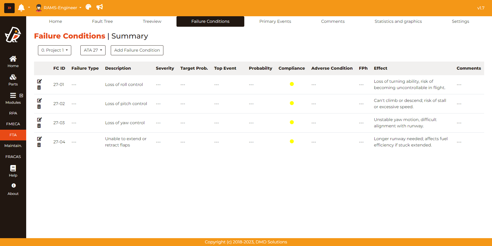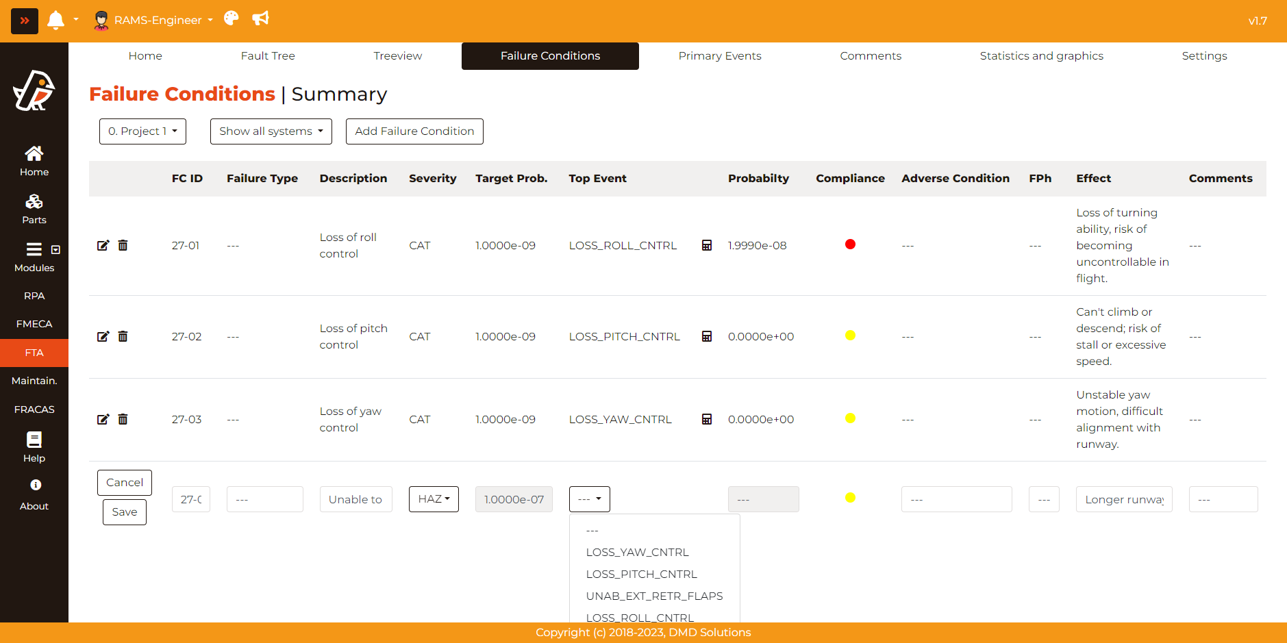 Severity: This field describes the seriousness of the Failure Condition. It’s often rated on a scale, such as Catastrophic, Hazardous, Major, Minor, etc., to reflect the potential impact. New severities can be created in the FTA settings page.