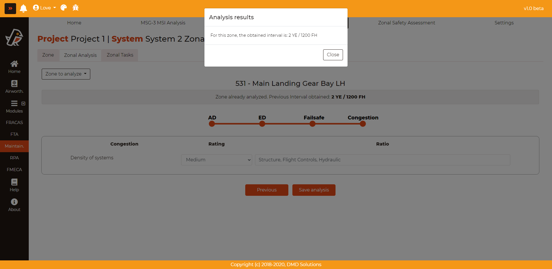 Robin allows to print a report about the MSG-3 Zonal Analysis Procedure. It contains all the zone with its corresponding information. It also contains all the analysis performed with the resulting interval. Also, all the tasks related to each zone are listed: